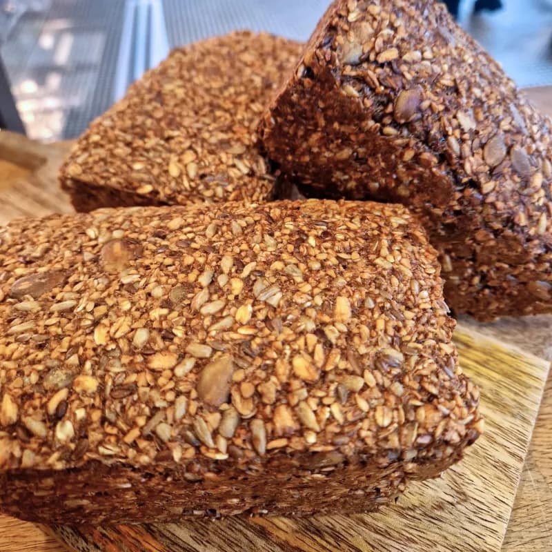 Pełnowartościowy chleb wypiekany wyłącznie z całych ziaren, bez dodatku mąki. Zwart y, sycący i intensywnie ziarnisty w smaku, przygotowany z naturalnych składników, bez sztucznych dodatków, polepszaczy i konserwantów. To doskonały wybór dla osób ceniących prosty skład, wysoką wartość odżywczą i naturalne pieczywo.
