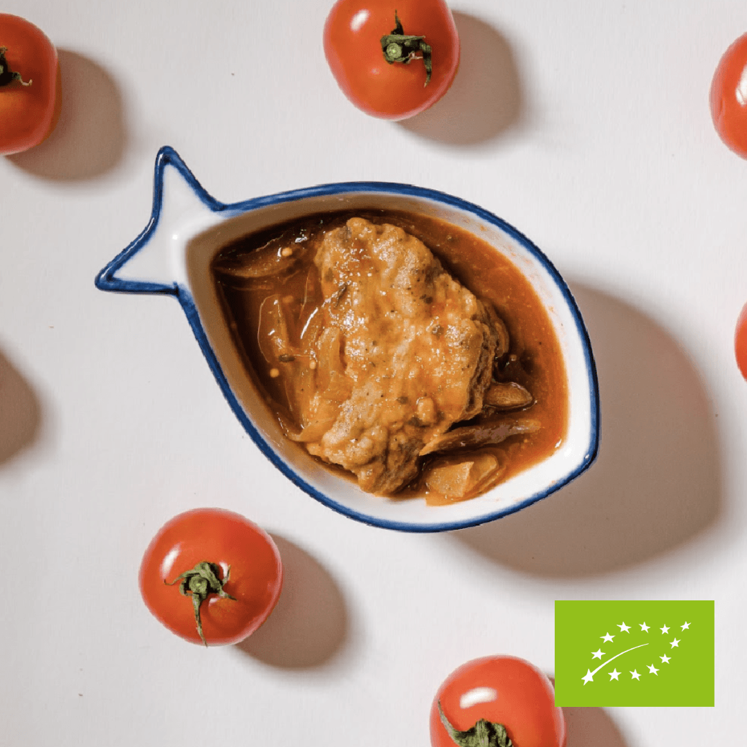 Karp w sosie pomidorowym BIO powstał z myślą o sympatykach klasyki. W naszej wersji ma jednak swój niepowtarzalny charakter – kawałki ryby są tutaj bardzo delikatne, a sos pomidorowy ma wyrazisty smak.