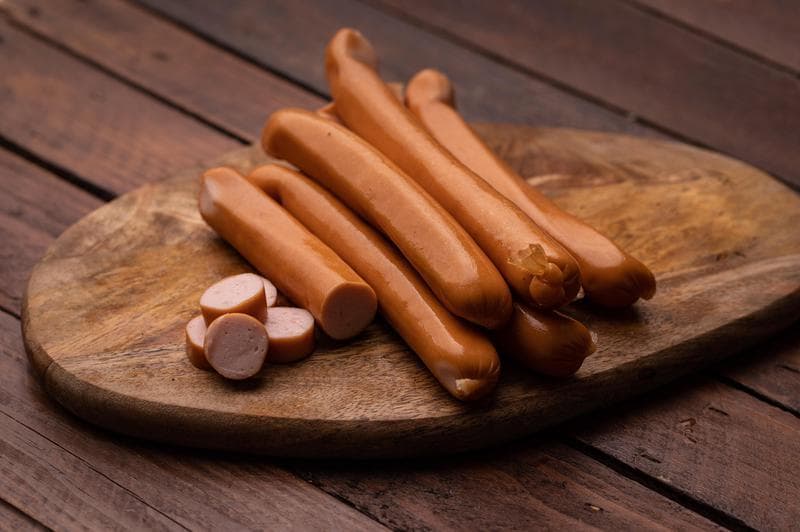 Nowe paróweczki drobiowe. Krótkie z bardzo delikatną osłonką. Bez soli peklującej. 8-9 sztuk.