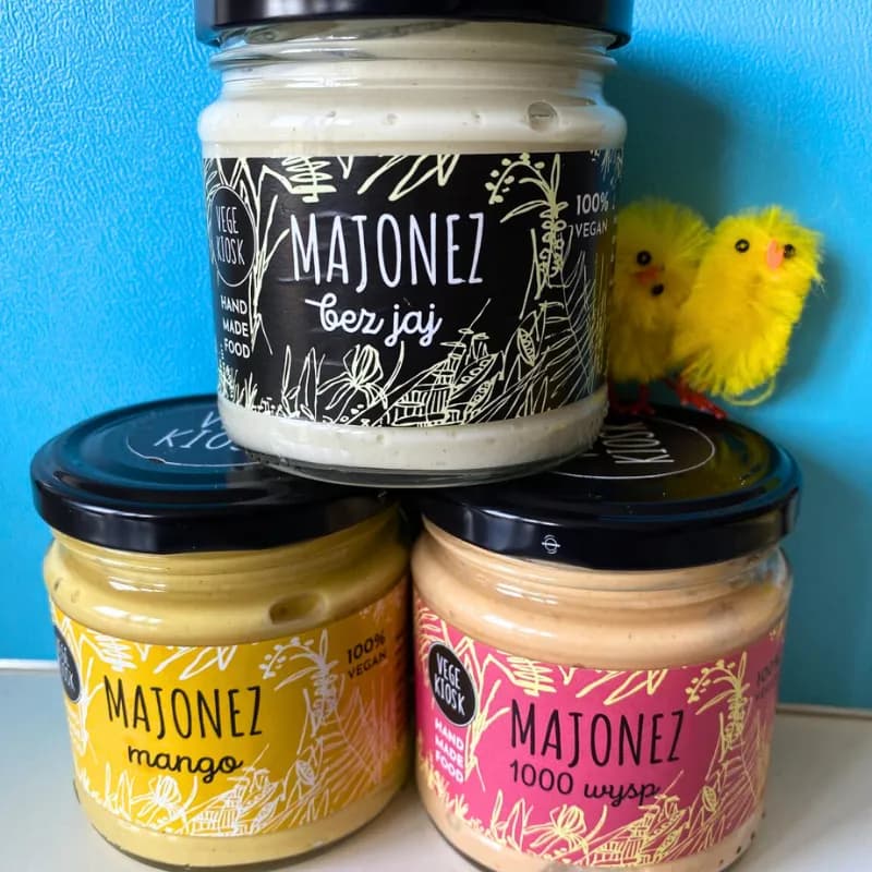Zestaw wegańskich majonezów stworzonych wg własnych receptur, bez dodatku substancji zagęszczających oraz bez konserwantów.